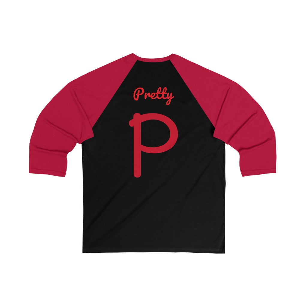 The Pretty P 3/4 sleeve baseball tee is great to wear for any event.